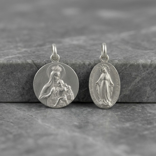En Esdeplata te ofrecemos una amplia colección de medallas religiosas en plata: medallas de la Virgen (Montserrat, Rocío, Guadalupe, Carmen, Milagrosa), medallas de Cristo (Sagrado Corazón, crucificados), medallas de santos como San Benito, San Francisco de Asís o ángeles protectores.