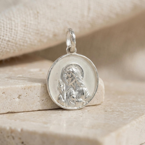 Esta medalla en plata de ley 925 presenta la imagen de la Virgen del Rocío con un bonito acabado mate y brillo que resalta los detalles del relieve. La parte trasera es lisa, perfecta para personalizar con un grabado (nombre, fecha, iniciales).